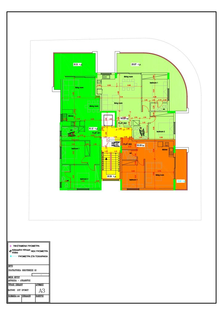 | Όροφος | Αριθμός Διαμερίσματος | Αριθμός Υπνοδωματίων | Αριθμός Μπάνιων | Αποθηκη | Χωρος Σταθμευσης | Covered area m2 | Covered veranda m2 | Roof garden m2 | Communal area m2 | Total m2 | Διαθεσιμοτητα | Price | |