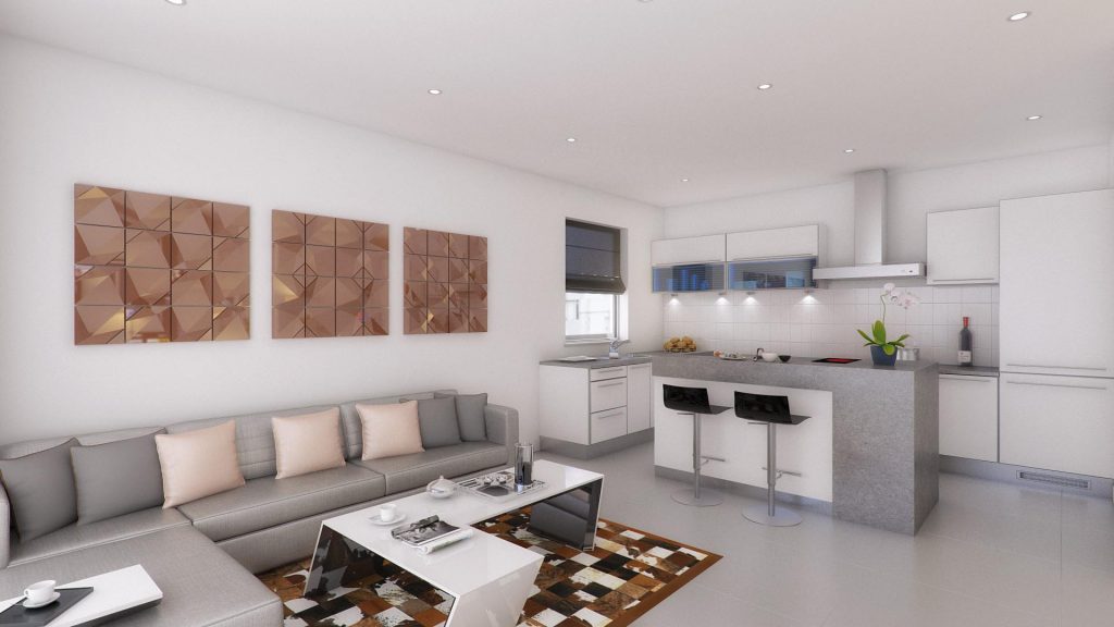 - First quality ceramic tiles for the flooring of the living room, dining room, kitchen, corridors, bedrooms, bathrooms and verandas in the colour preference of the client.